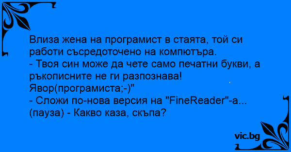 - Сложи по-нова версия на "FineReader"-а... (пауза) - Какво каза, скъпа?