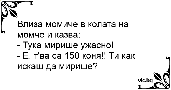 - Е, т'ва са 150 коня!! Ти как искаш да мирише?