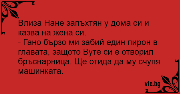 - Гано бързо ми забий един пирон в главата, защото Вуте си е отворил бръснарница. Ще отида да му счупя машинката.