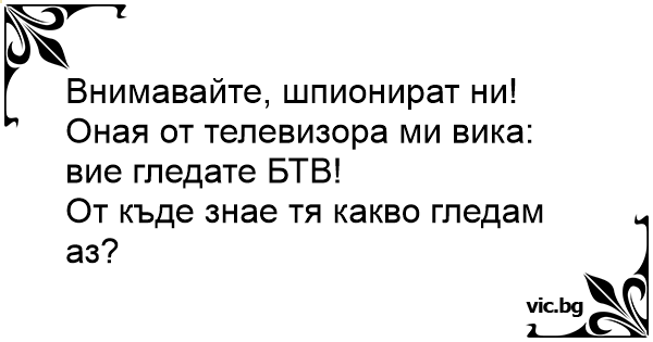 Внимавайте, шпионират ни! Оная от телевизора ми вика: вие гледате БТВ!
