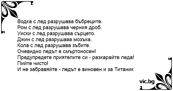 Водка с лед разрушава...