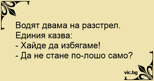 Водят двама на разстрел. Единия казва: