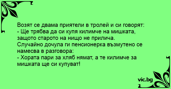 Возят се двама приятели в тролей и си говорят: