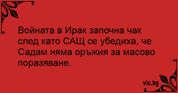 Войната в Ирак започна чак след като САЩ се убедиха, че Садам няма оръжия за масово поразяване.