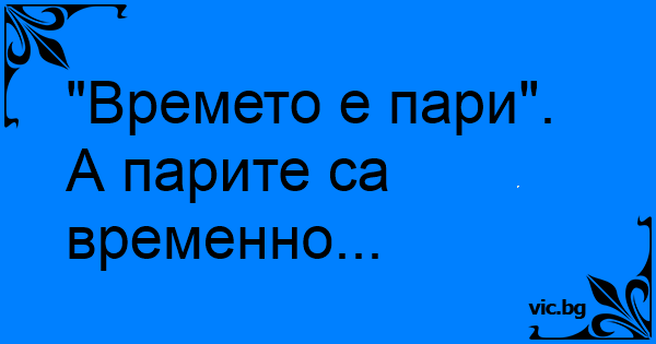 "Времето е пари". А парите са временно...