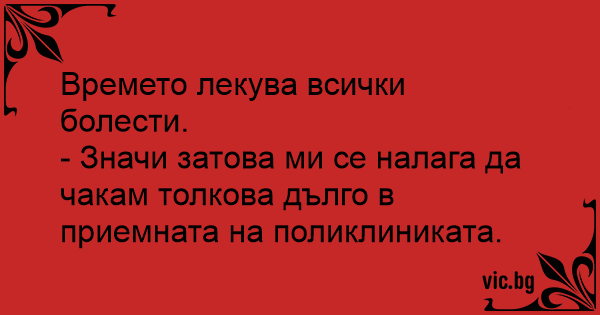 - Значи затова ми се налага да чакам толкова дълго в приемната на поликлиниката.