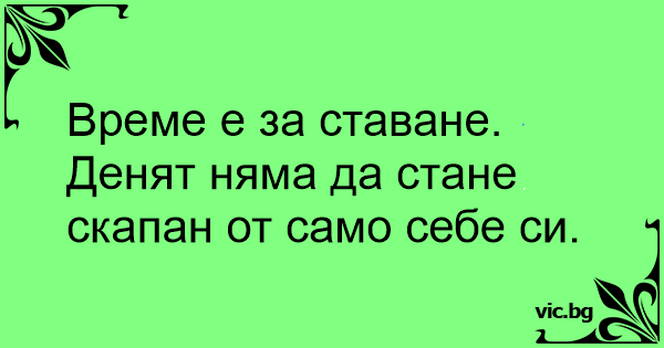 Време е за ставане. Денят няма да стане скапан от само себе си.