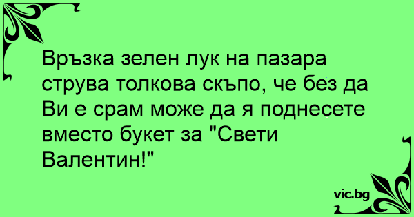 Връзка зелен лук на пазара струва толкова скъпо, че без да Ви е срам може да я поднесете вместо букет за "Свети Валентин!"