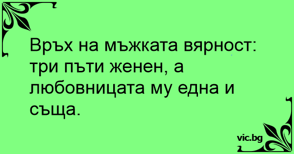 Што е врв на машката верност? Три пати се преженува, а цело време има иста љубовница.