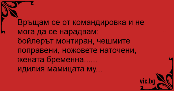 Връщам се от командировка и не мога да се нарадвам: