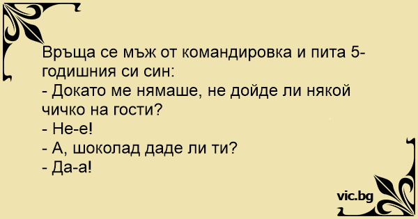 Връща се мъж от командировка и пита 5-годишния си син: