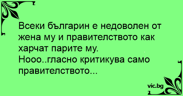 Всеки българин е недоволен от жена му и правителството как харчат парите му.