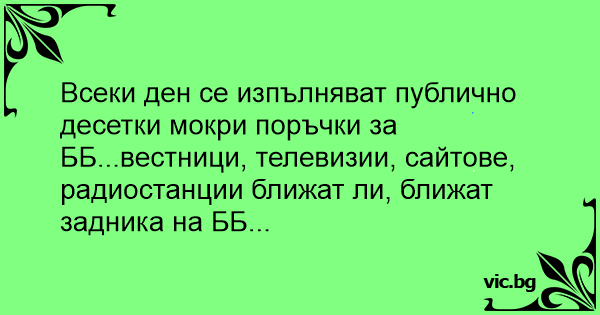 Всеки ден се изпълняват публично десетки мокри поръчки за ББ...вестници, телевизии, сайтове, радиостанции ближат ли, ближат задника на ББ...