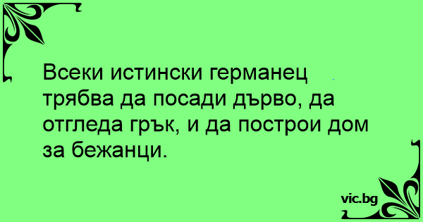 Всеки истински германец трябва да посади дърво, да отгледа грък, и да построи дом за бежанци.