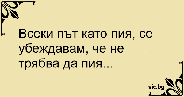 Всеки път като пия, се убеждавам, че не трябва да пия...