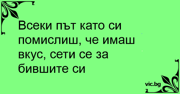 Всеки път като си помислиш, че имаш вкус, сети се за бившите си
