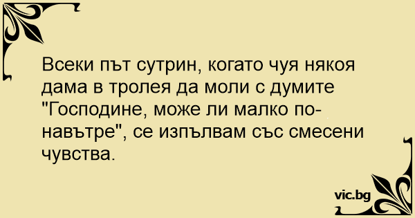 Всеки път сутрин, когато чуя някоя дама в тролея да моли с думите "Господине, може ли малко по-навътре", се изпълвам със смесени чувства.
