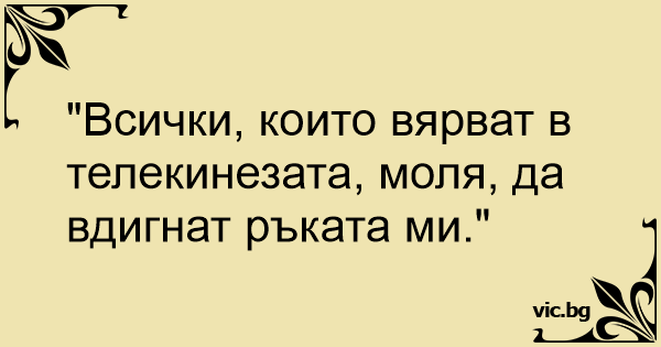 "Всички, които вярват в телекинезата, моля, да вдигнат ръката ми."