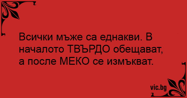 Всички мъже са еднакви. В началото ТВЪРДО обещават, а после МЕКО се измъкват.