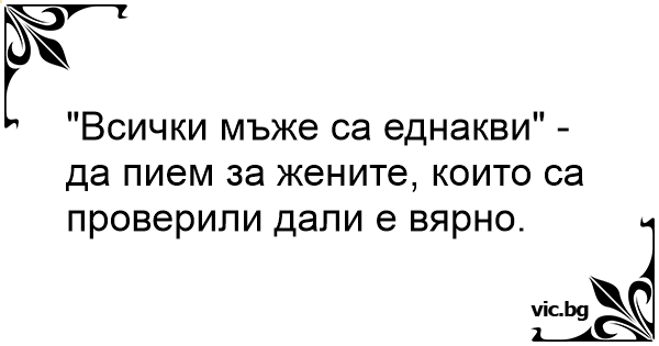 "Всички мъже са еднакви" - да пием за жените, които са проверили дали е вярно. 23 0 0 Кратки вицове, 1000+ кратки вица
