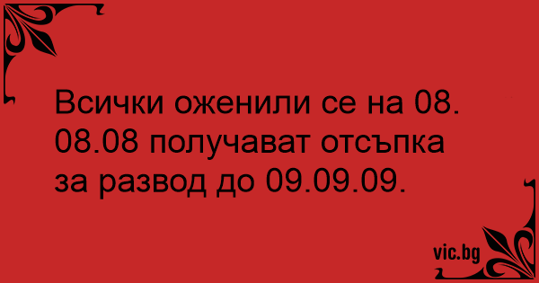 Всички оженили се на 08. 08.08 получават отсъпка за развод до 09.09.09.