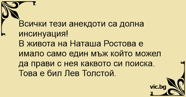 В живота на Наташа Ростова е имало само един мъж който можел да прави с нея каквото си поиска. Това е бил Лев Толстой.