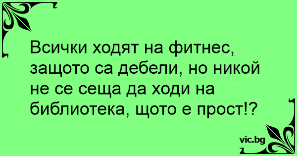 Всички ходят на фитнес, защото са дебели, но никой не се сеща да ходи на библиотека, щото е прост!?