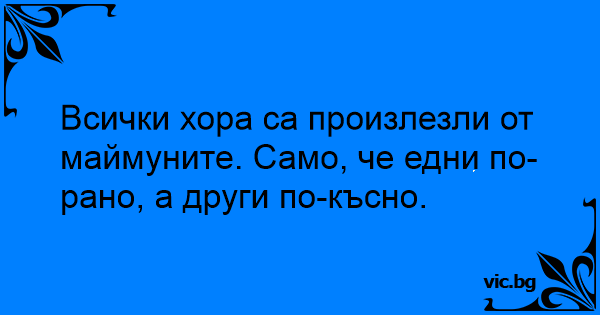 Всички хора са произлезли от маймуните. Само, че едни по-рано, а други по-късно.