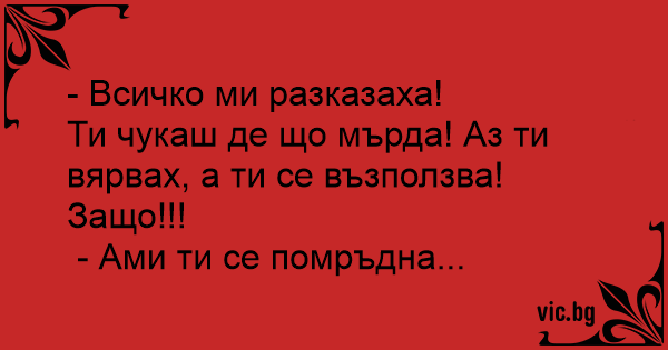 Ти чуkaш де що мърда! Аз ти вярвах, а ти се възползва! Защо!!!