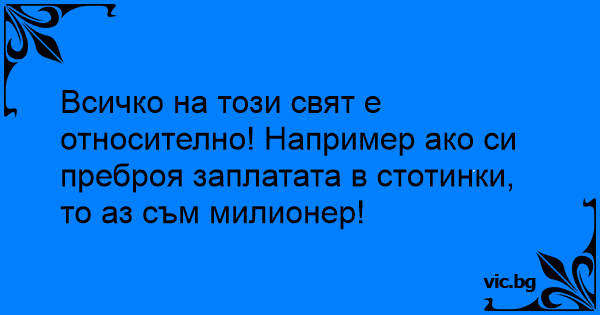 Всичко на този свят е относително! Например ако си преброя заплатата в стотинки, то аз съм милионер!