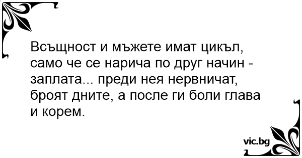 Всъщност и мъжете имат цикъл, само че се нарича по друг начин - заплата... преди нея нервничат, броят дните, а после ги боли глава и корем.