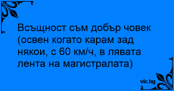 Всъщност съм добър човек (освен когато карам зад някои, с 60 км/ч, в лявата лента на магистралата)