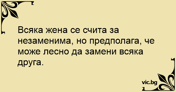 Всяка жена се счита за незаменима, но предполага, че може лесно да замени всяка друга.