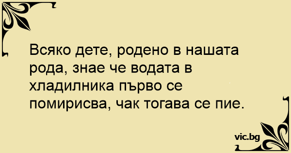 Всяко дете, родено в нашата рода, знае че водата в хладилника първо се помирисва, чак тогава се пие.
