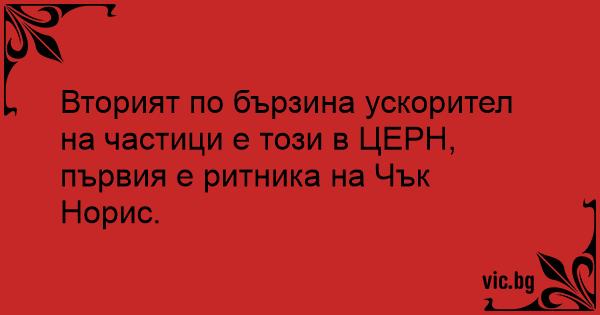 Вторият по бързина ускорител на частици е този в ЦЕРН, първия е ритника на Чък Норис.