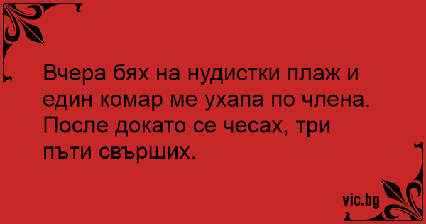Вчера бях на нудистки плаж и един комар ме ухапа по члeнa.