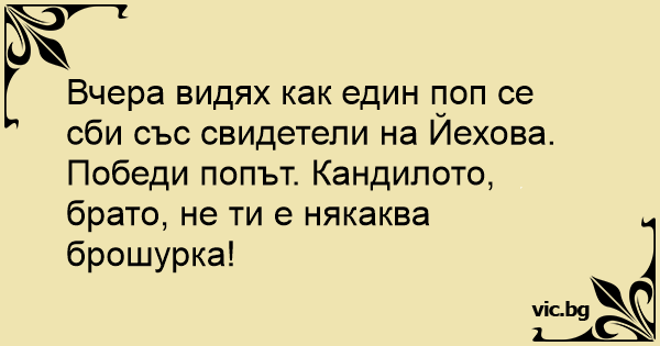Победи попът. Кандилото, брато, не ти е някаква брошурка!