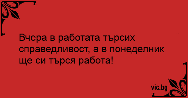 Вчера в работата търсих справедливост, а в понеделник ще си търся работа!