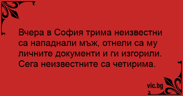Вчера в София трима неизвестни са нападнали мъж, отнели са му личните документи и ги изгорили.