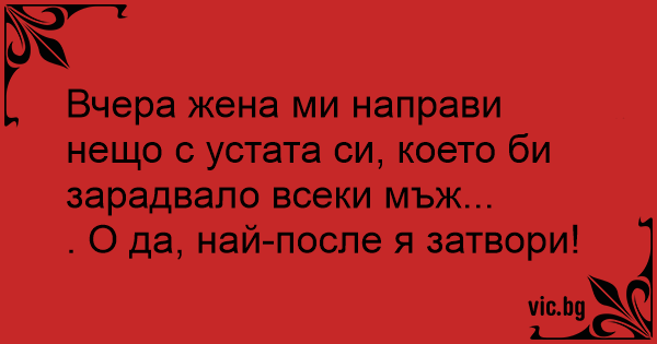 Вчера жена ми направи нещо с устата си, което би зарадвало всеки мъж...