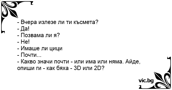 • Вицове от Facebook от нашата страница https://www.facebook.com/www.vic.bg