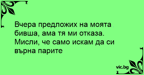 Вчера предложих на моята бивша, ама тя ми отказа. Мисли, че само искам да си върна парите