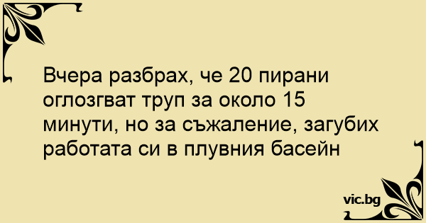 Вчера разбрах, че 20 пирани...