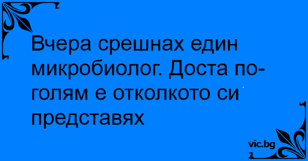 Вчера срешнах един микробиолог. Доста по-голям е отколкото си представях