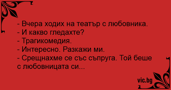 - Вчера ходих на театър с любовника.