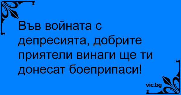 Във войната с депресията, добрите приятели винаги ще ти донесат боеприпаси!