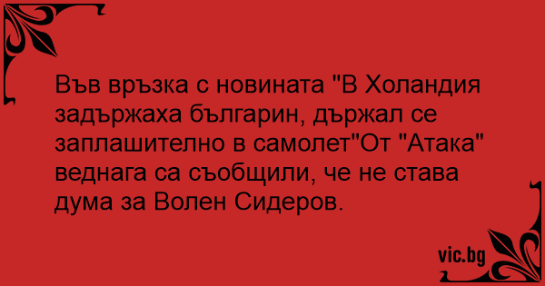 Във връзка с новината "В Холандия задържаха българин, държал се заплашително в самолет"От "Атака" веднага са съобщили, че не става дума за Волен Сидеров.