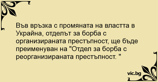 Във връзка с промяната на властта в Украйна, отделът за борба с организираната престъпност, ще бъде преименуван на "Отдел за борба с реорганизираната престъпност. "