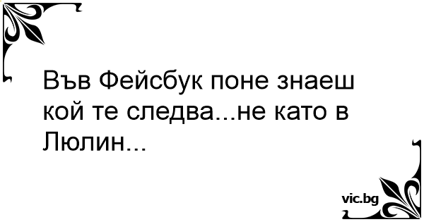 Във Фейсбук поне знаеш кой те следва...не като в Люлин...<br />