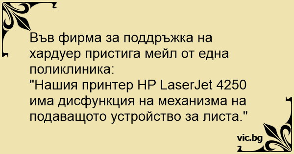 Във фирма за поддръжка на хардуер пристига мейл от една поликлиника: